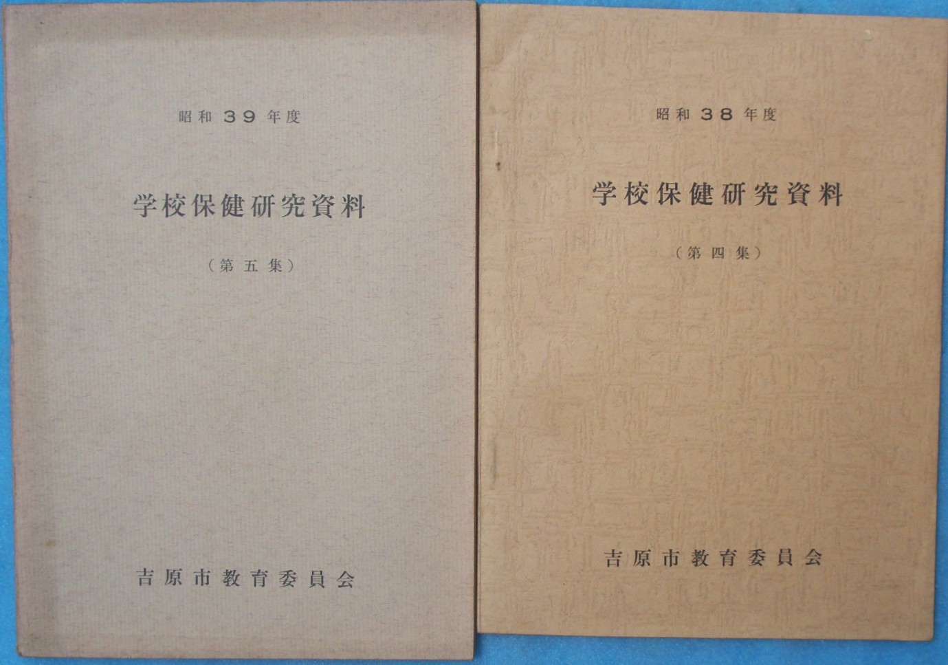 学校保健研究資料 4・5集 二冊 (昭和38・39年度) (静岡県)吉原市教育委員会 | B5判、43・97ページ、表紙端ヤケ、小口ヤケ大 | 静岡県・吉原市教育委員会 | 昭和38・39年度 | \1,200 | |