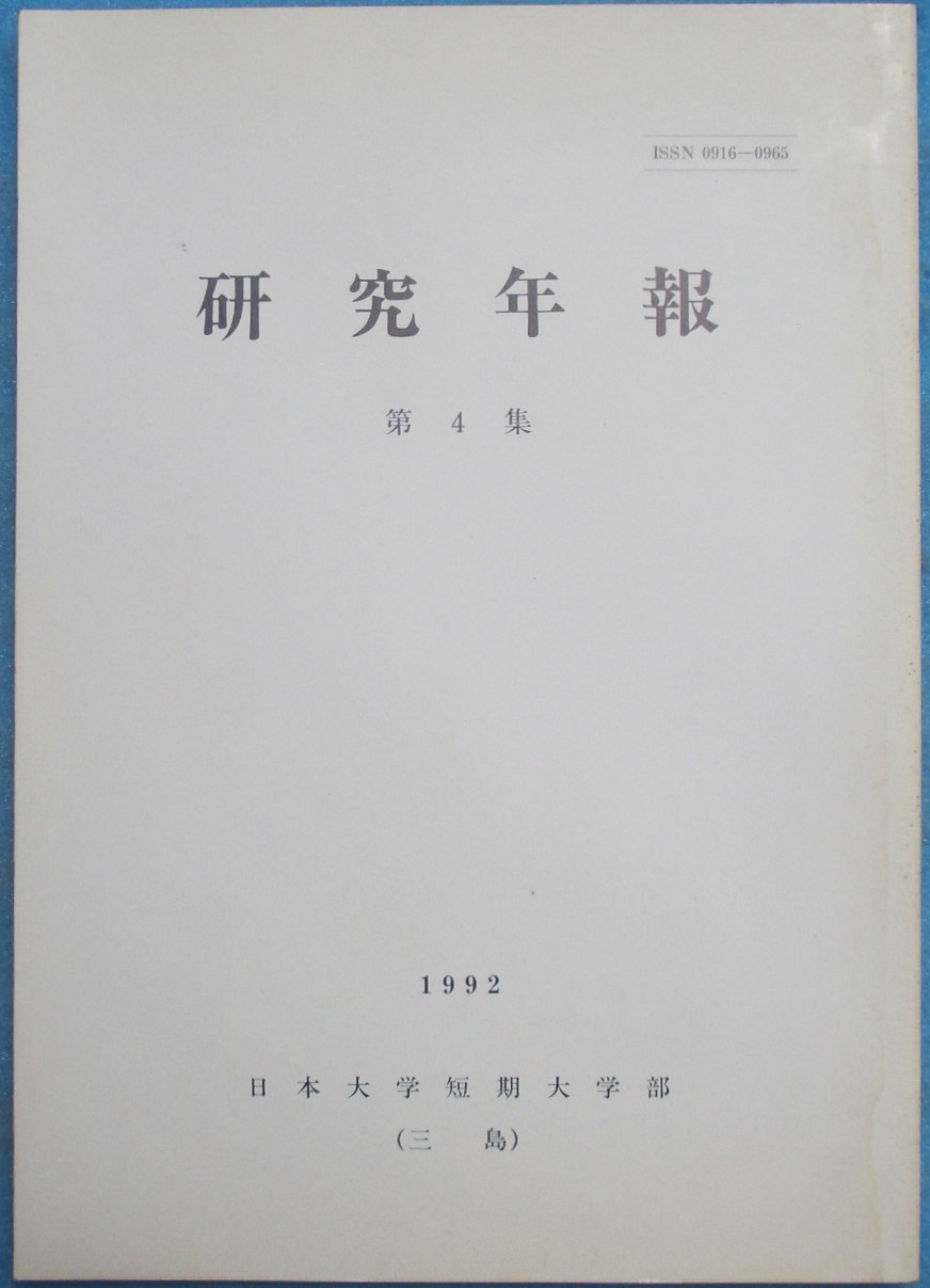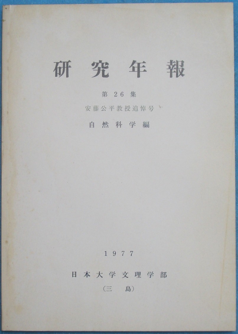 研究年報 第26集 安藤公平教授追悼号 | B5、自然科学編 | 日本大学文理学部(三島) | 昭和53 | \1,500 | |