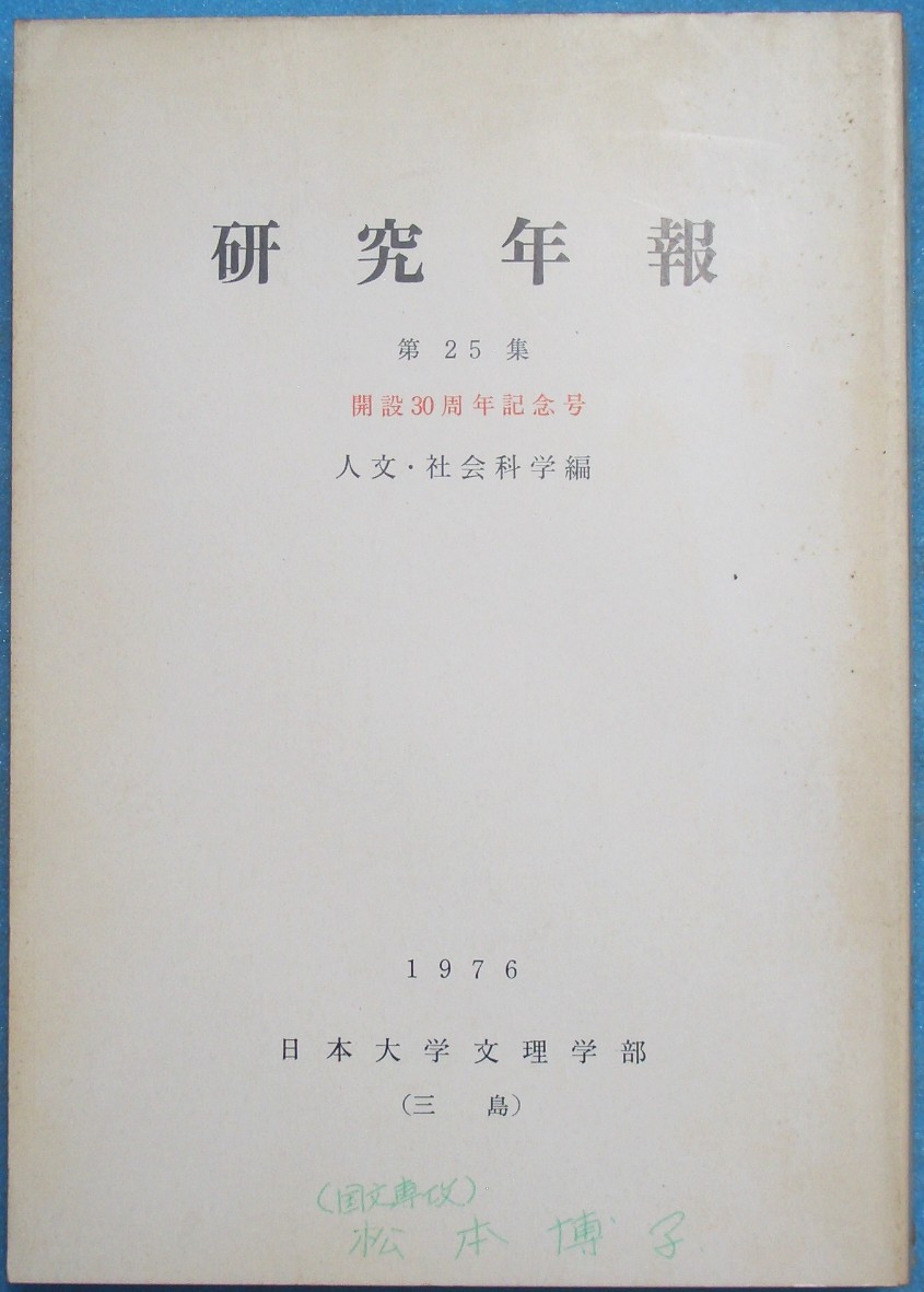 研究年報 第27集 自然科学編 | B5 | 日本大学文理学部(三島) | 昭和54 | \1,000 | |