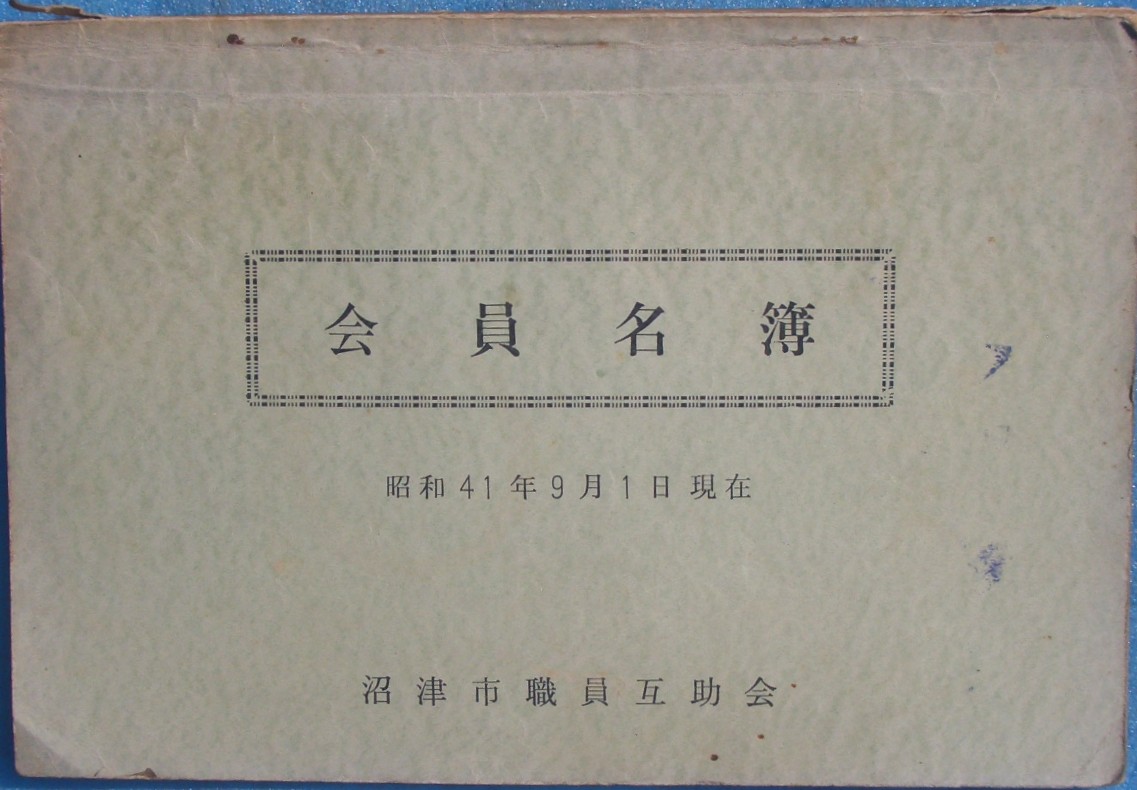 | 沼津市職員互助会 会員名簿 昭和41年9月1日現在 | B6判、84ページ、横本、蔵印、背・端痛、小口ヤケ | 静岡県沼津市 | 昭和41年 | \1,000 | |