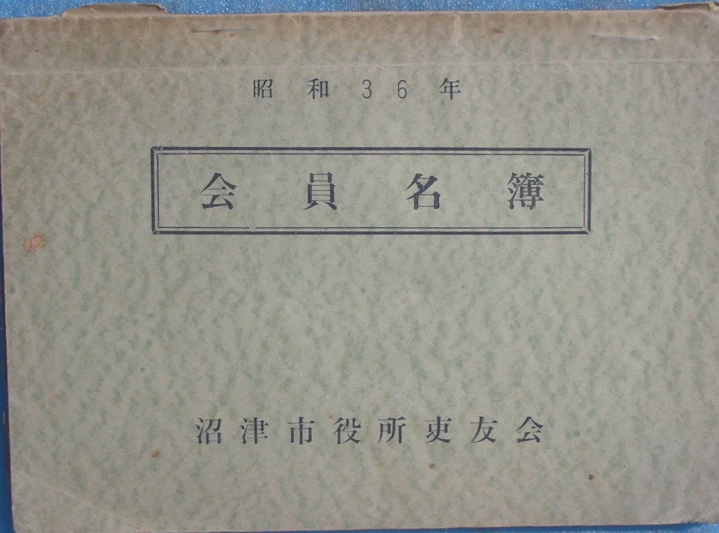 | 沼津市役所吏友会 会員名簿 昭和36年 | B6判、68ページ、横本、背痛、小口ヤケ大、蔵印 | 静岡県沼津市 | 昭和36年 | \1,000 | |