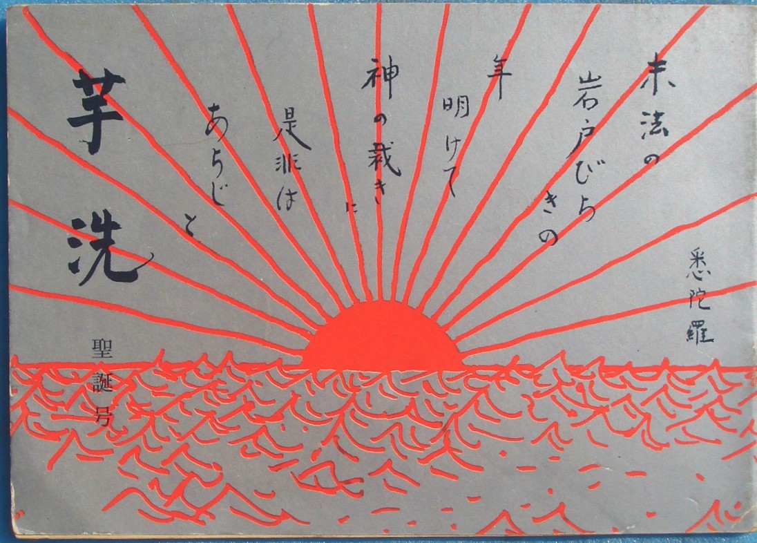 | 芋洗 聖誕号(4巻1号) 1968年1月号 教燈・悉陀羅 大宇宙教沼津本部 | B6判、横本、34ページ、裏表紙角少破、端痛、小口ヤケ | 静岡県沼津市・大宇宙教 | 昭和43年 | \1,000 | |