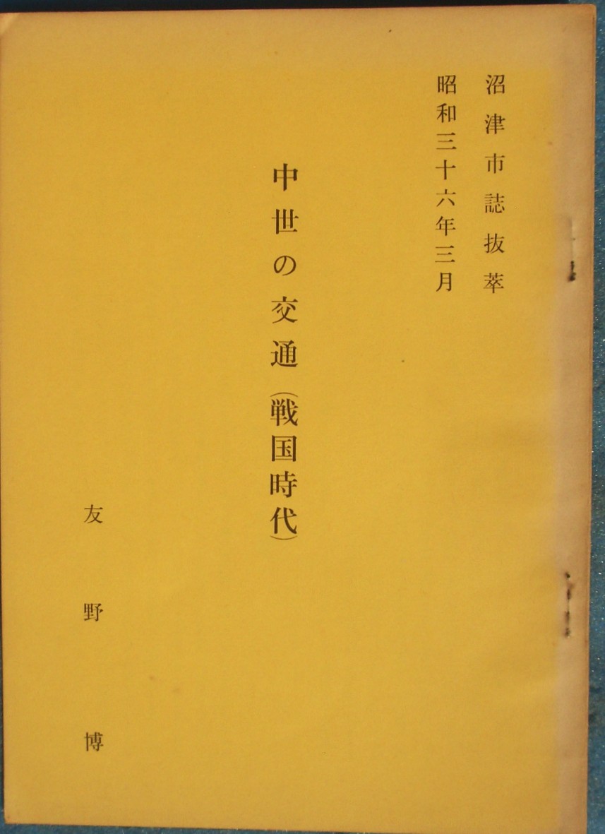 | 中世の交通(戦国時代) 沼津市誌抜萃 昭和36年3月 | A5判、14ページ、端ヤケ | 友野博 | 昭和36年 | \400 | |
