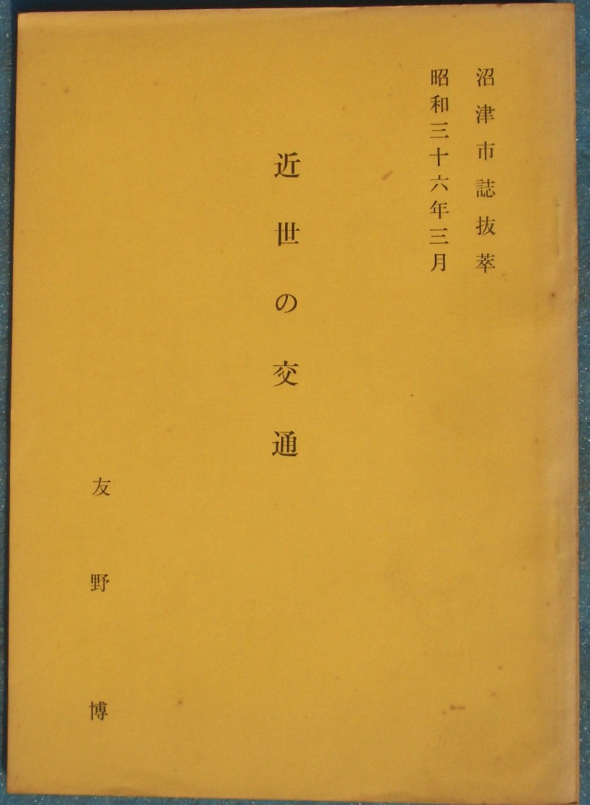 | 近世の交通 沼津市誌抜萃 昭和36年3月 | A5判、56ページ、端ヤケ | 友野博 | 昭和36年 | \500 | |