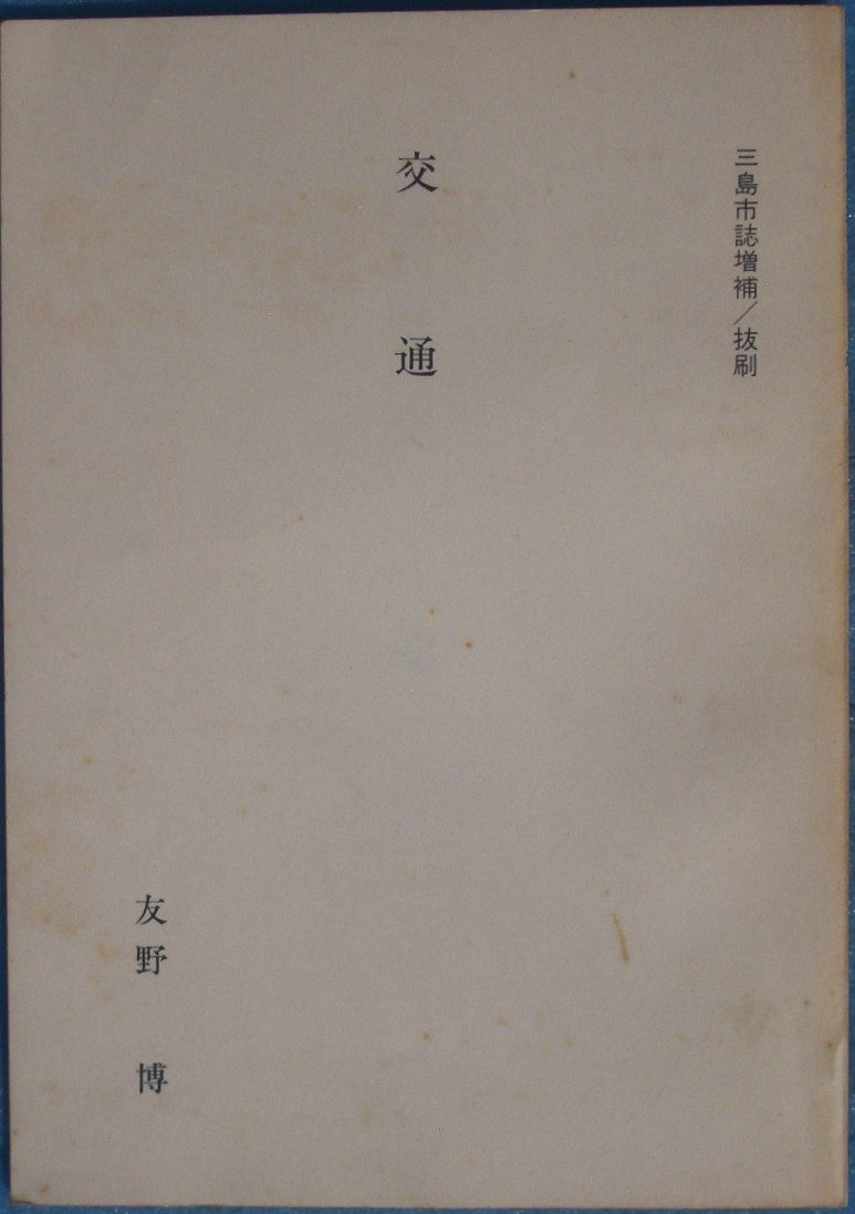 | 交通 三島市誌増補・抜刷 | A5判、55ページ、背・小口少ヤケ | 友野博 | \500 | ||