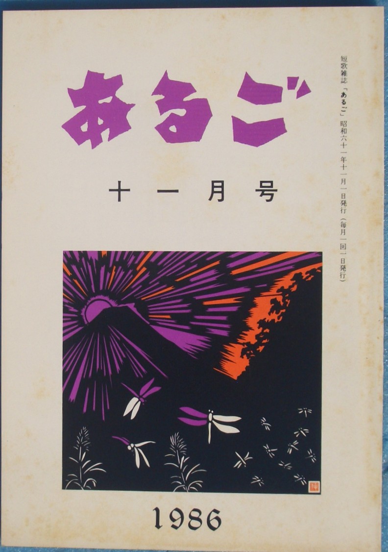 | あるご 1986年11月号 短歌雑誌 静岡県三島市・あるご短歌会 | A5判、60ページ、端少汚 | あるご短歌会 | 昭和61年 | \400 | |