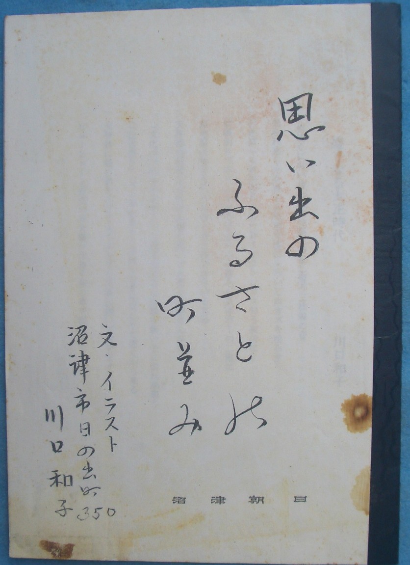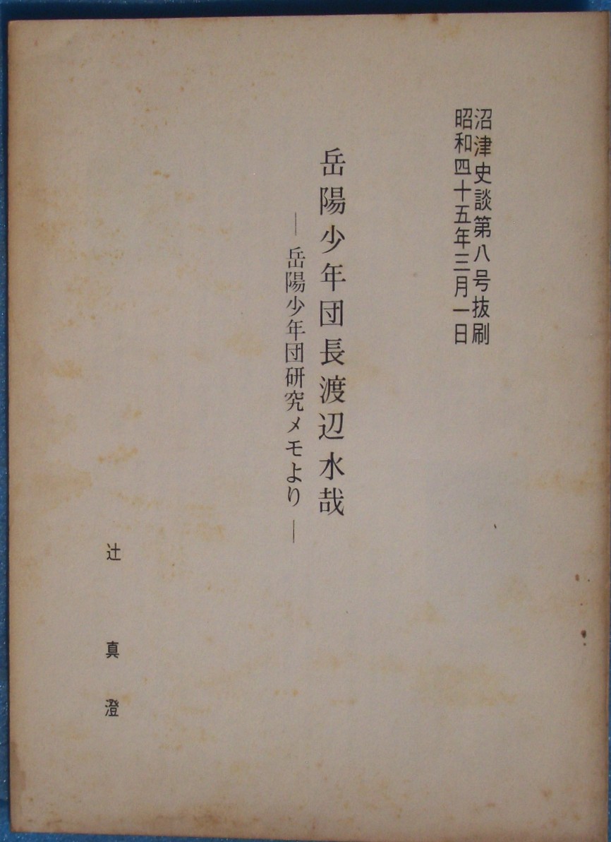 | 岳陽少年団長渡辺水哉 岳陽少年団研究メモより 沼津史談8号抜刷 昭和45年3月1日 | A5判、14ページ、下部シミ | 辻真澄 | 昭和45年 | \300 | |