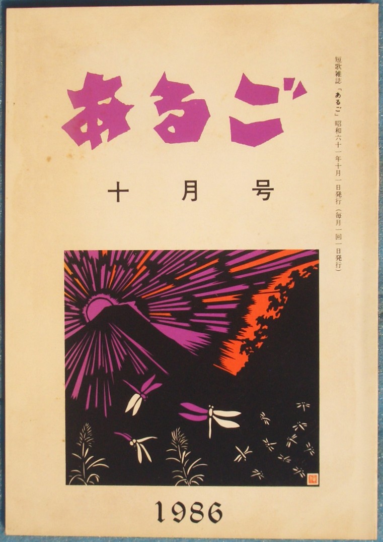 | あるご 1986年10月号 短歌雑誌 静岡県三島市・あるご短歌会 | A5判、62ページ、少汚 | 静岡県三島市・あるご短歌会 | 昭和61年 | \400 | |