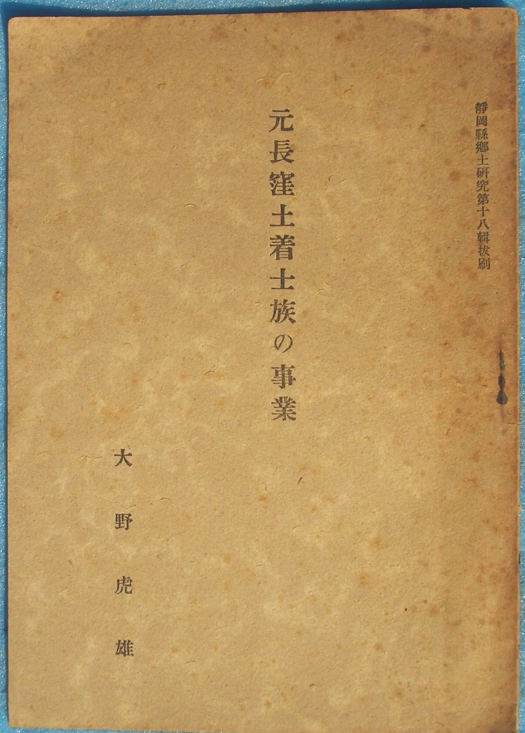 | 元長窪土着士族の事業 静岡県郷土研究18輯抜刷 (駿東郡長泉村) | A5判、20ページ、ヤケ・汚 | 大野虎雄 | 昭和17年 | \400 | |