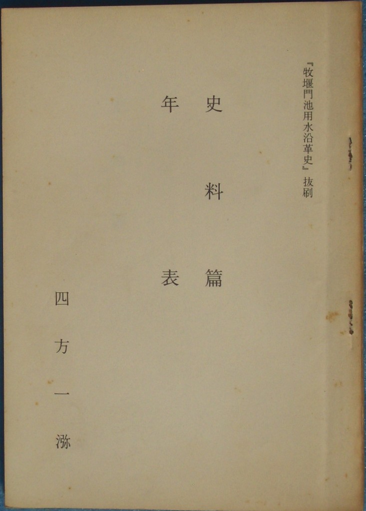 | 牧堰門池用水沿革史抜刷 史料篇・年表 (静岡県沼津市門池用水) | A5判、94ページ、背・小口ヤケ | 四方一弥 | \600 | ||