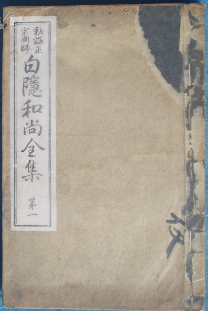 | 白隠和尚全集 第一 勅謚正宗国師 光融館 痛本 | A5判、糸綴、表裏表紙痛大、奥付欠 | 光融館 | 明治38年 | \1,500 | |