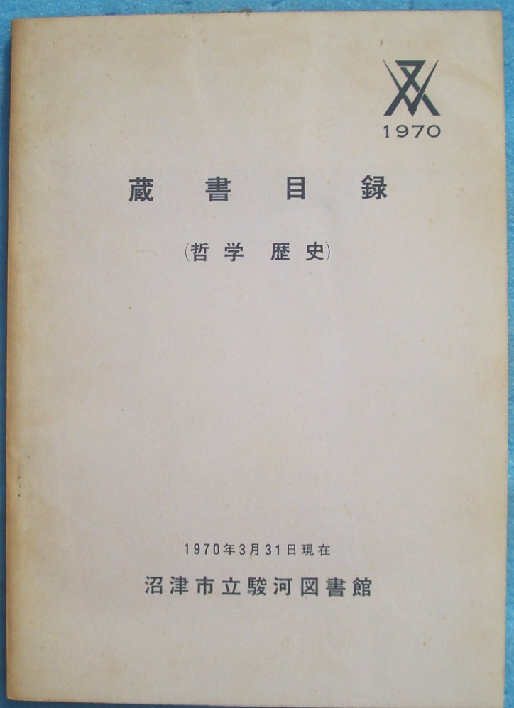 | 蔵書目録 (哲学・歴史) 1970年3月31日現在 沼津市立駿河図書館 | B5判、79ページ、背・小口ヤケ大 | 静岡県・沼津市立駿河図書館 | 昭和45年 | \1,000 | |