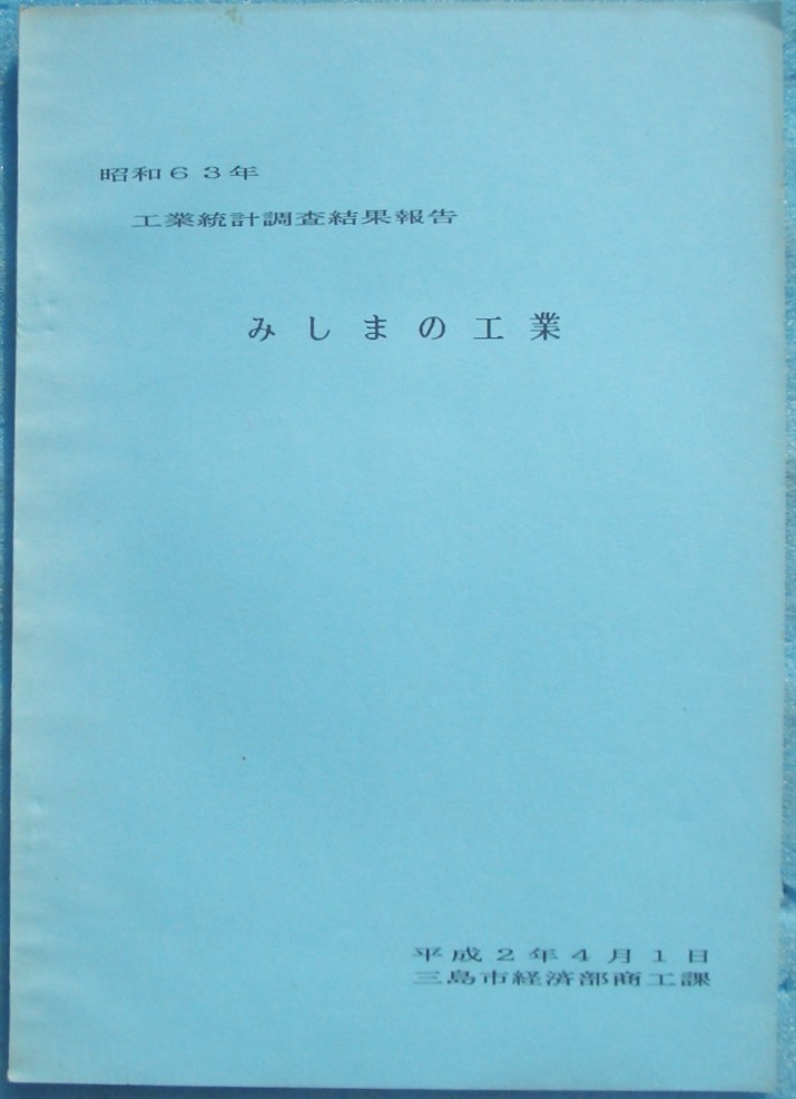 | みしまの工業 昭和63年 工業統計調査結果報告 静岡県三島市経済部商工課 | B5判、41ページ | 三島市経済部商工課 | 平成2年 | \500 | |