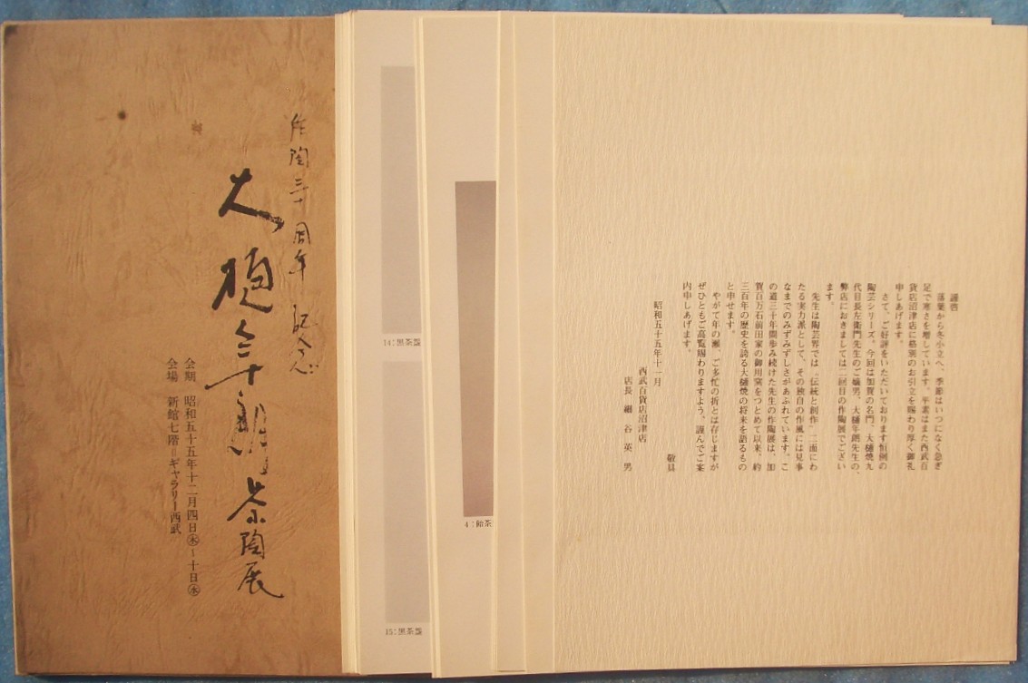| 大樋年朗茶陶展 作陶三十周年記念 (図録) 西武百貨店沼津店 | B5判、紙帙少汚・28葉、 | 西武百貨店沼津店 | 昭和55年 | \1,500 | |