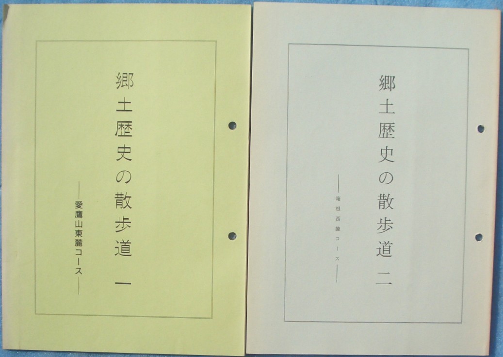 | 郷土歴史の散歩道 1・2 二冊 (愛鷹山麓コース・箱根西麓コース) 静岡県・裾野市教育委員会社会教育課 | B5判、21・33ページ、パンチ穴、端少ヤケ | 裾野市教育委員会社会教育課 | 1995・1992年 | \1,000 | |