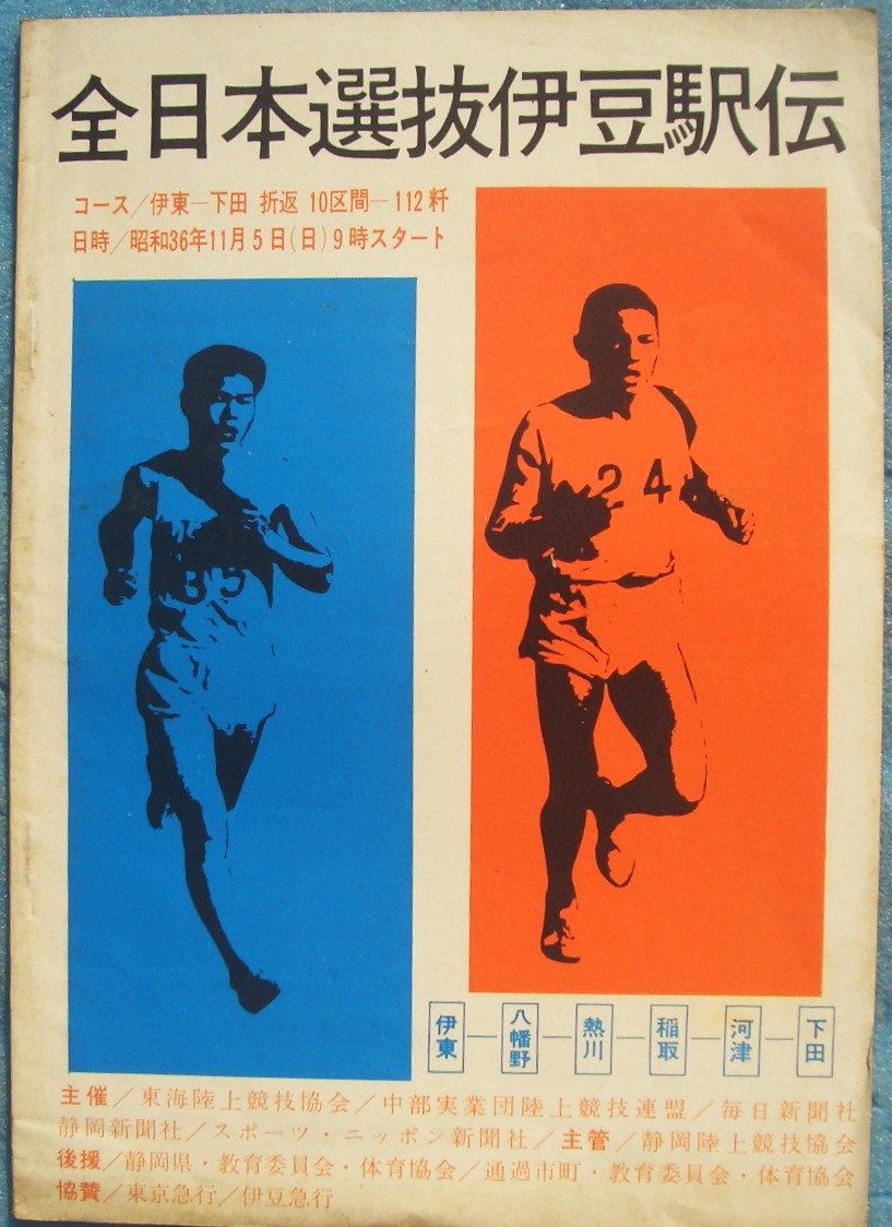 | 全日本選抜伊豆駅伝 昭和36年 伊東−下田 静岡陸上競技協会主管 | B5判、12ページ、表紙端汚・シワ、選手名簿 | 静岡陸上競技協会主管 | 昭和36年 | \1,000 | |