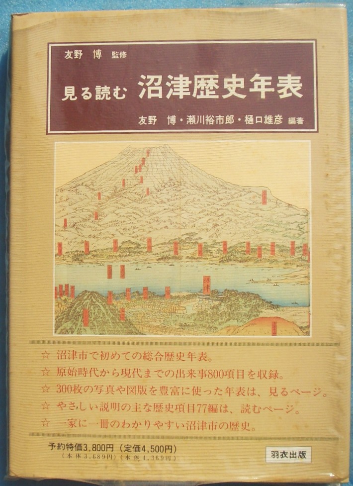 | 見る読む 沼津歴史年表 | A4、カバー | 友野 博・瀬川裕市郎・樋口雄彦編 | 羽衣出版 | 平成4 | \2,500 |