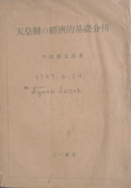 | 天皇制の経済的基礎分析 | A5判、カバー背ヤケ・端少破、記名、小口ヤケ大 | 戸田慎太郎 | 三一書房 | 昭和22年 | 売切 |